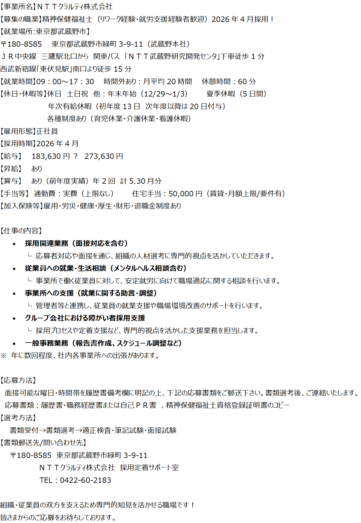 【事業所名】NTTクラルティ株式会社